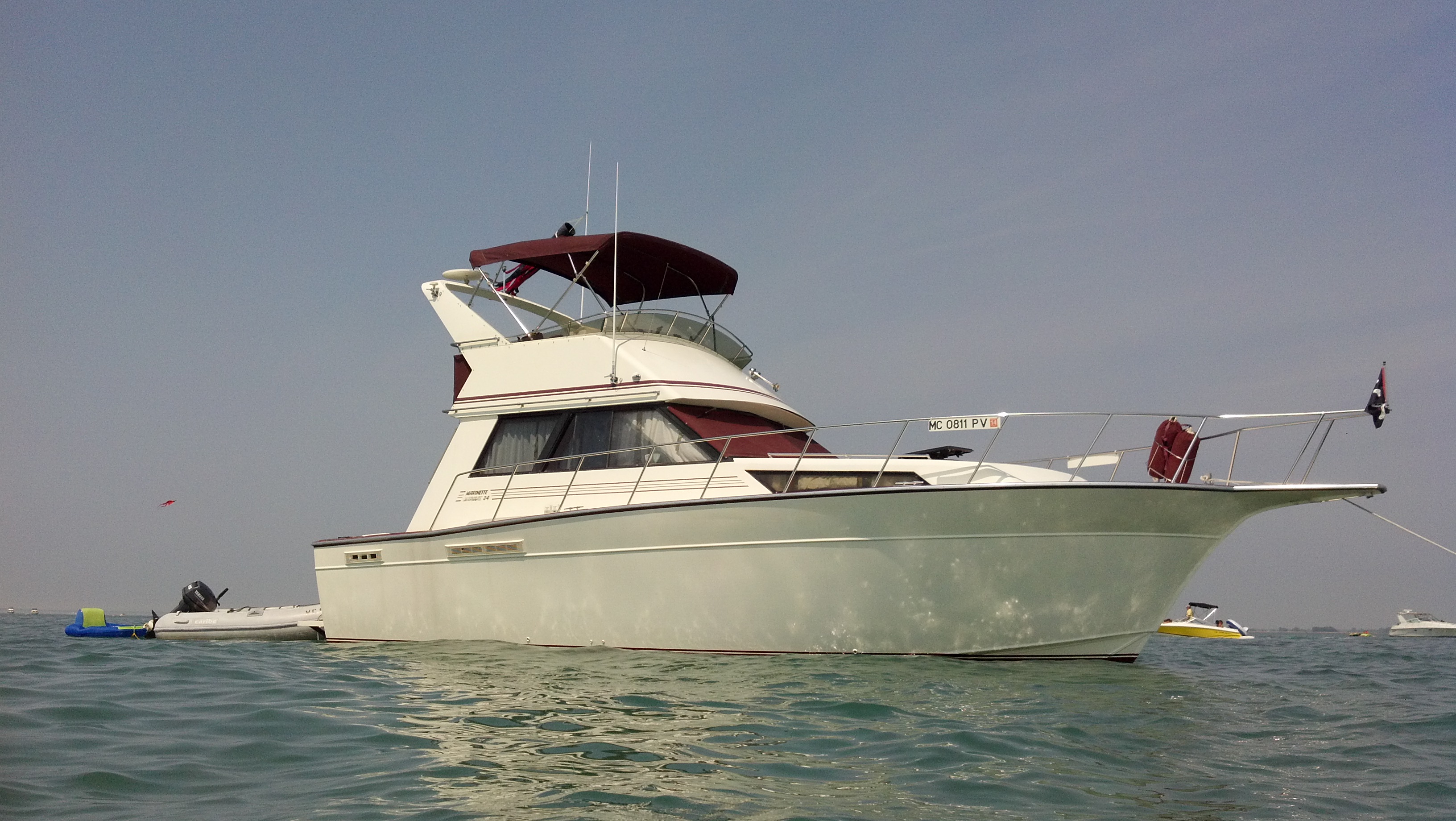 1991 Marinette 34 with twin 454 Crusaders, stand-up shower, new canvas with full back enclosure and newer vinyl seating. $45,000.00