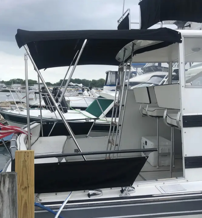 I can only hope to find a rear Bimini for my 37’, but I did find a place that makes Bimini frames and fabric for house boats, that’d be the right width. https://northstarproductsinc.com/