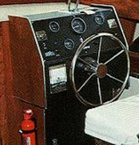 The one on my 75 Express fly bridge is a 3/4" tapered shaft, prior owner said he bought it off eBay, not sure if the helm is original though. Steering is the next project, after the engines, keep us posted.