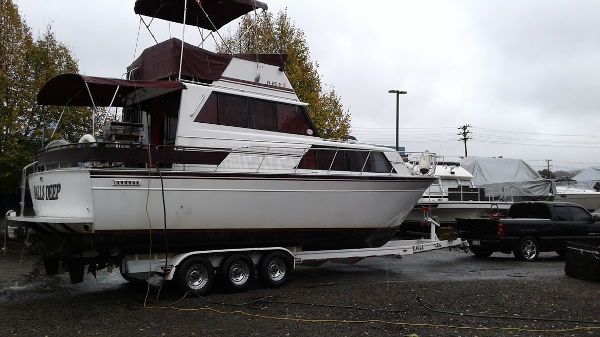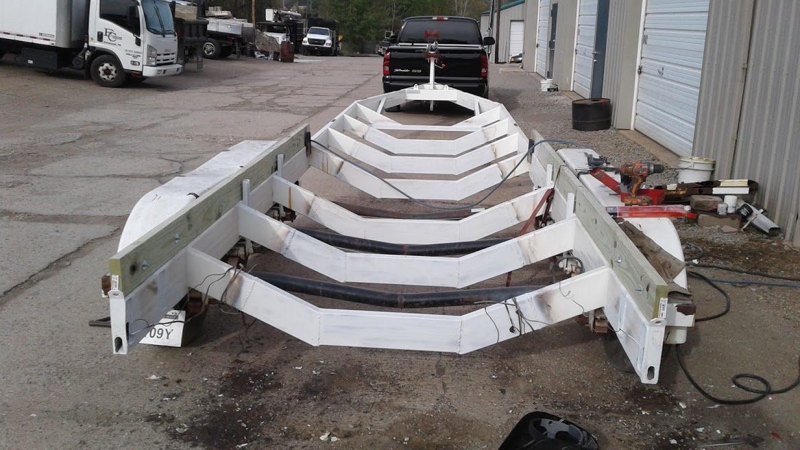 I have a 32', I have had sitting in a cradle for 5 years, about time to get back to her. How wide is your trailer at the bunk boards? How deep is the drop in the bottom? I have twin screws. I have a couple of Smaller twin axle trailers, I may stretch one or start over?? Not sure what I want to do?? Your thoughts??