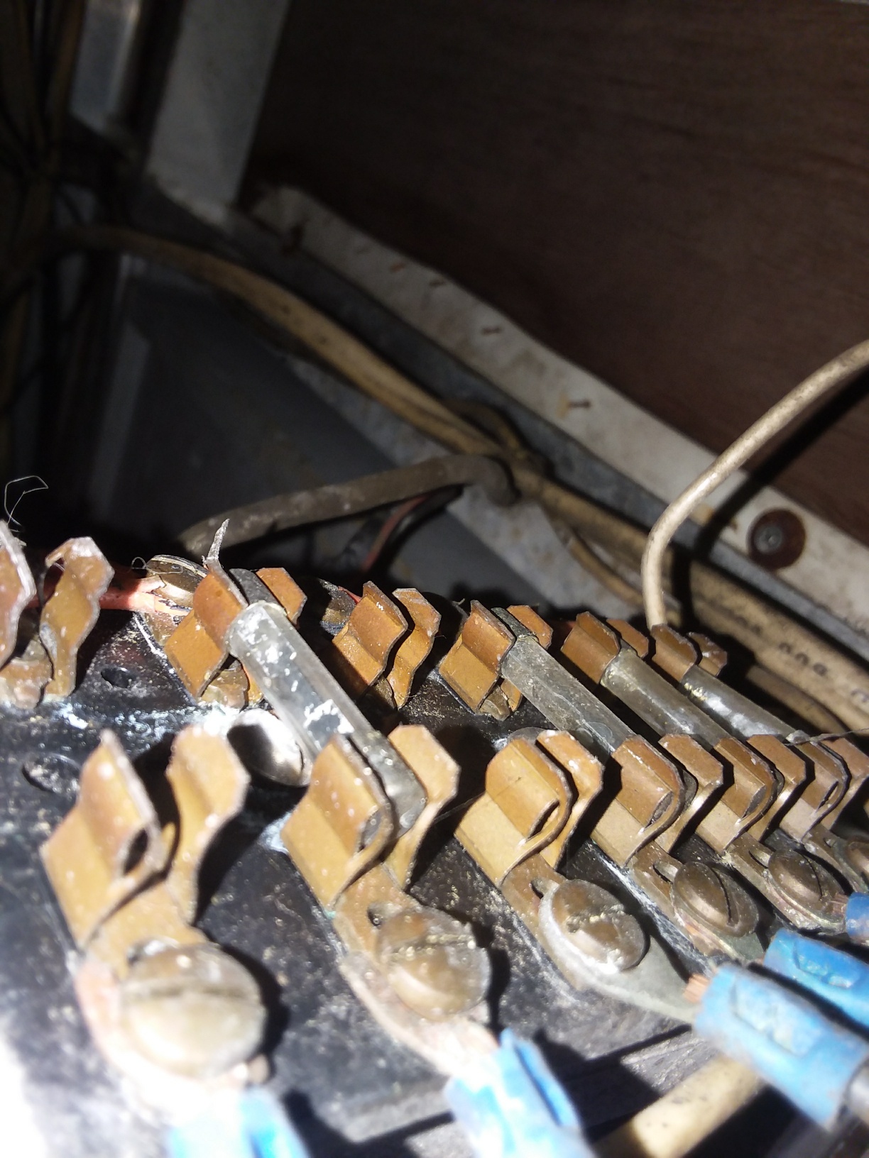 tracing wires, I found the second battery charger wired into a harness and the ground goes to the hull ground. where the hull ground is located there is this odd fuse block behind the frame. I think maybe one of these goes to an aft bilge pump, and maybe to the alternator? anyone else encounter something like this? Several fuses are missing also.