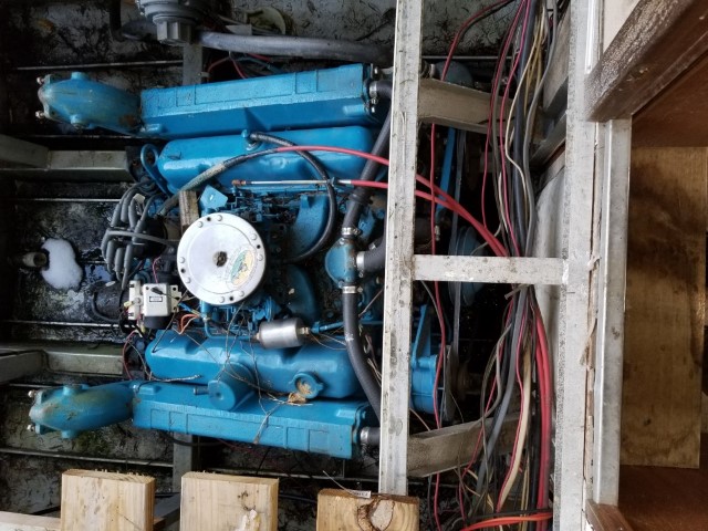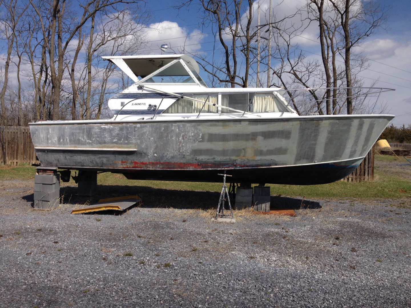 She's about an hour away so I still haven't seen her and have no data; year, model, LOA, nothing except for this single pic he gave me and the fact that it has a reman engine with <50 hours (318?). I'm sure that after sitting for 2 years even the engine will need a good checkout, oil change, engine fog, oil prime, perhaps a carb rebuild, etc. We're getting together this Sunday to check her out and make the arrangements!