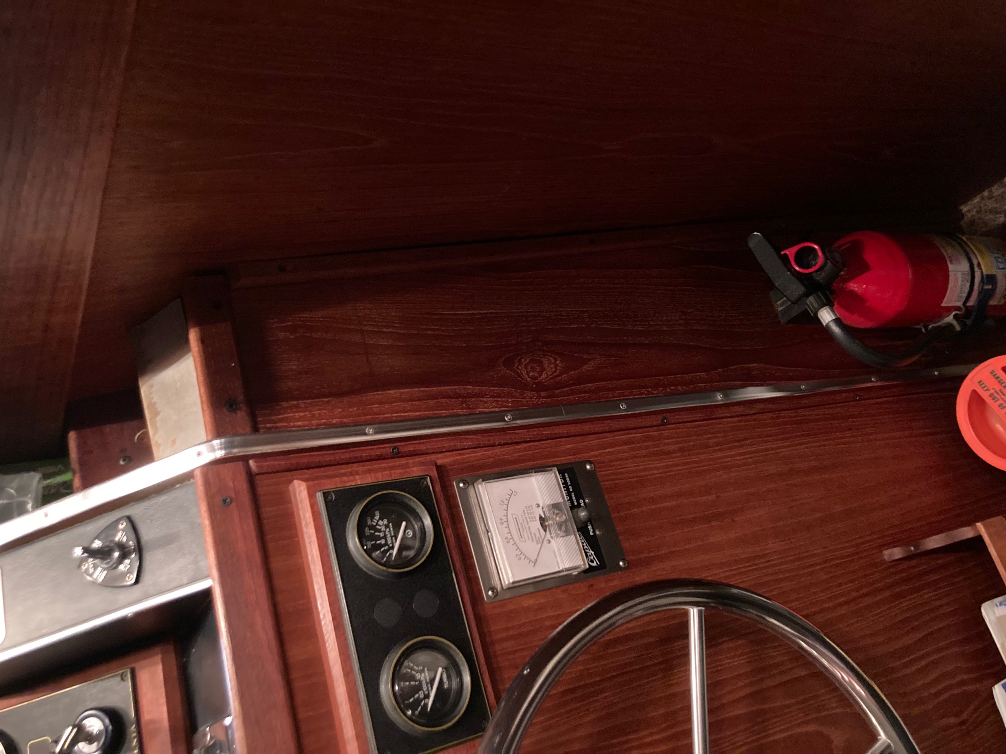 The whole wood panel next to helm folds forward